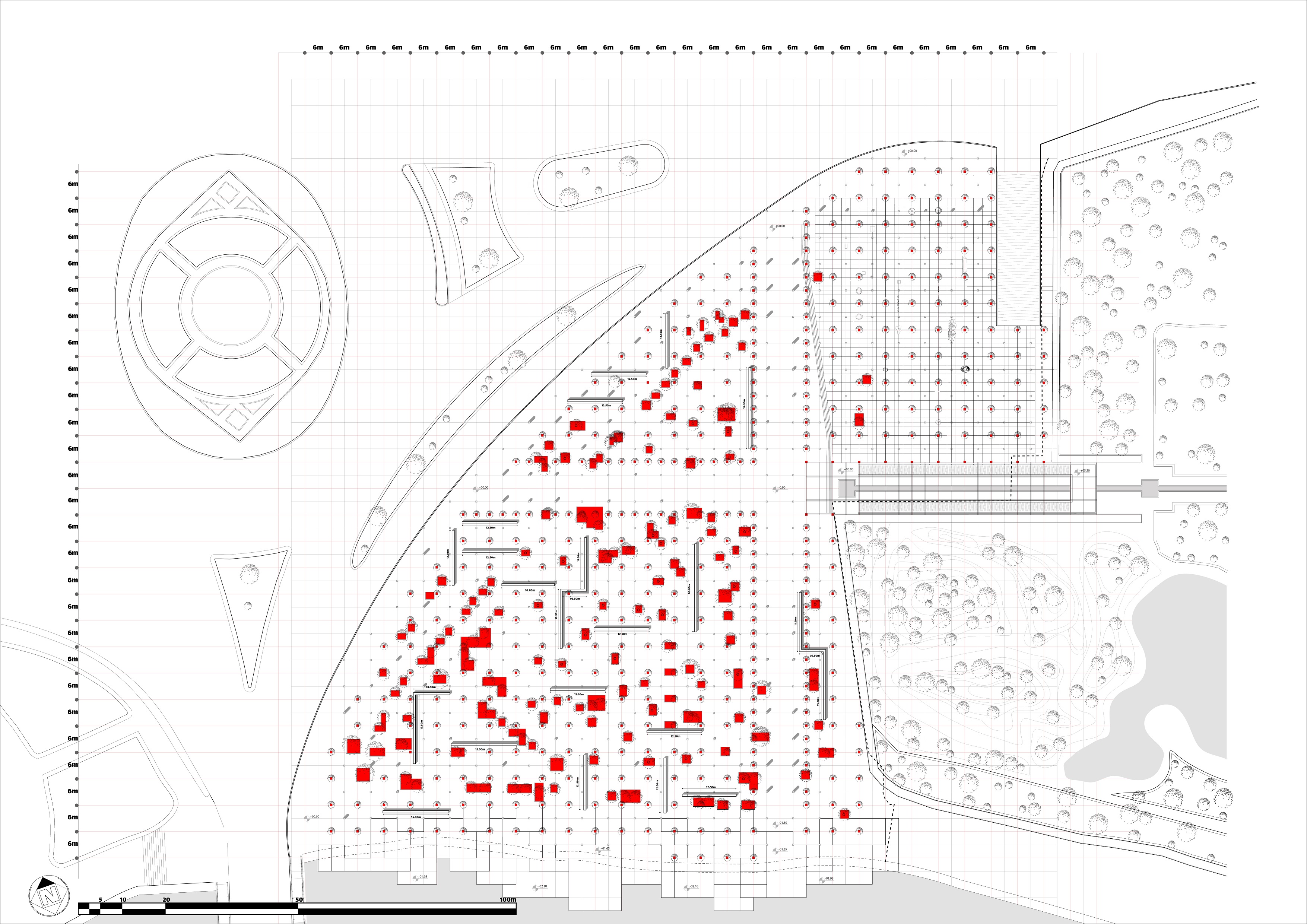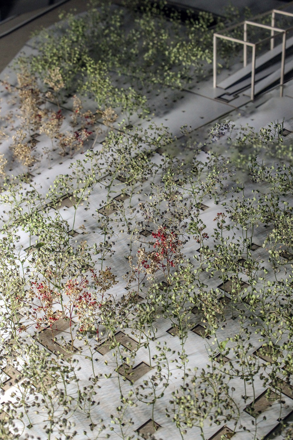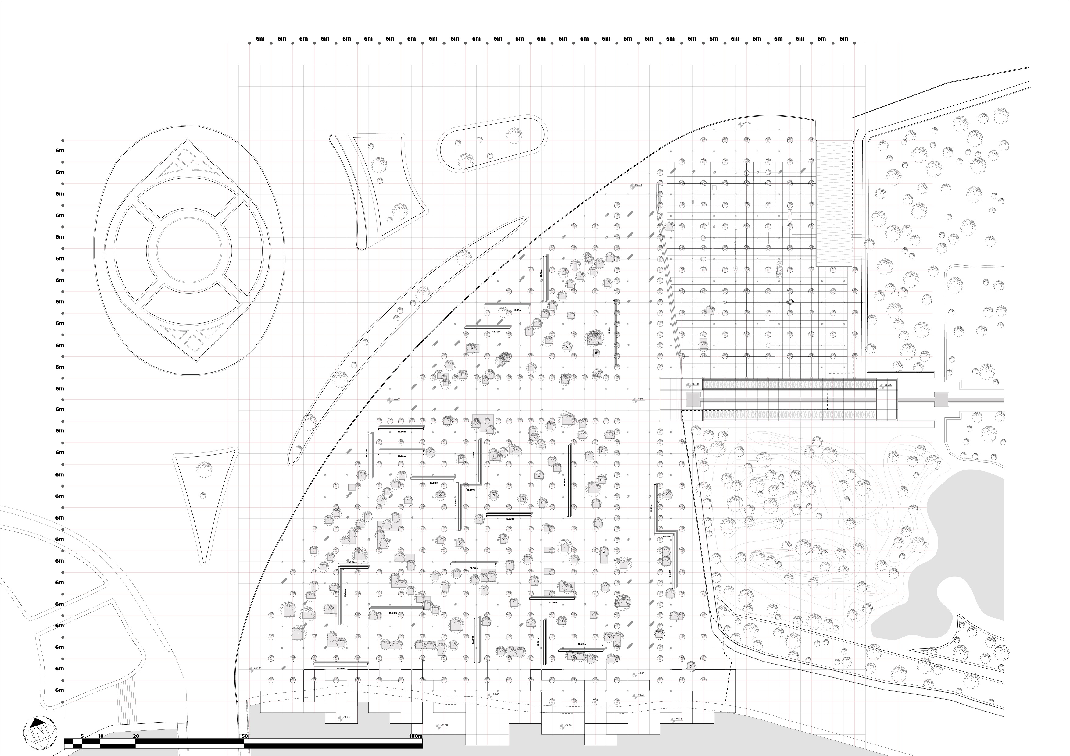 The project is a surface with small gardens on the nodes of the main grid and random gardens of the trees that we couldn't move. Therefore the project is a patch in the scale of the whole site that carving out the gardens in it creates trajectory.