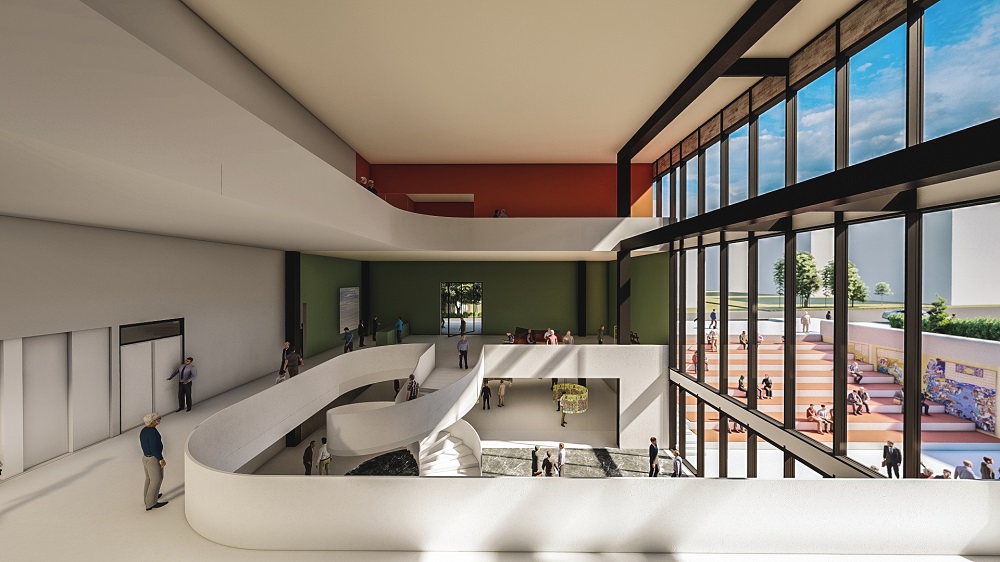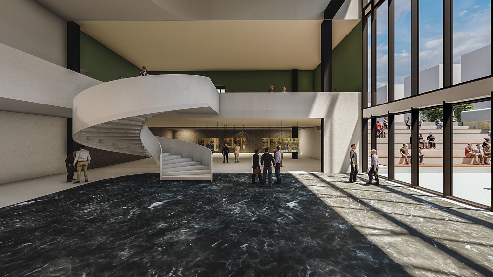 وید میانی، ضمن سازماندهی فضاها در اطراف خود، نگاهها را به درون و اتفاقات لابی و گودال باغچه در امتداد آن جذب میکند. فضای لابی به عنوان فضایی بینابینی میان آمفی تئاترها و گالری عمل میکند و امکان حرکت از درون به بیرون و تبدیل به فضای نیمهباز جهت گسترش رویدادها درون گودال باغچه را فراهم میکند.